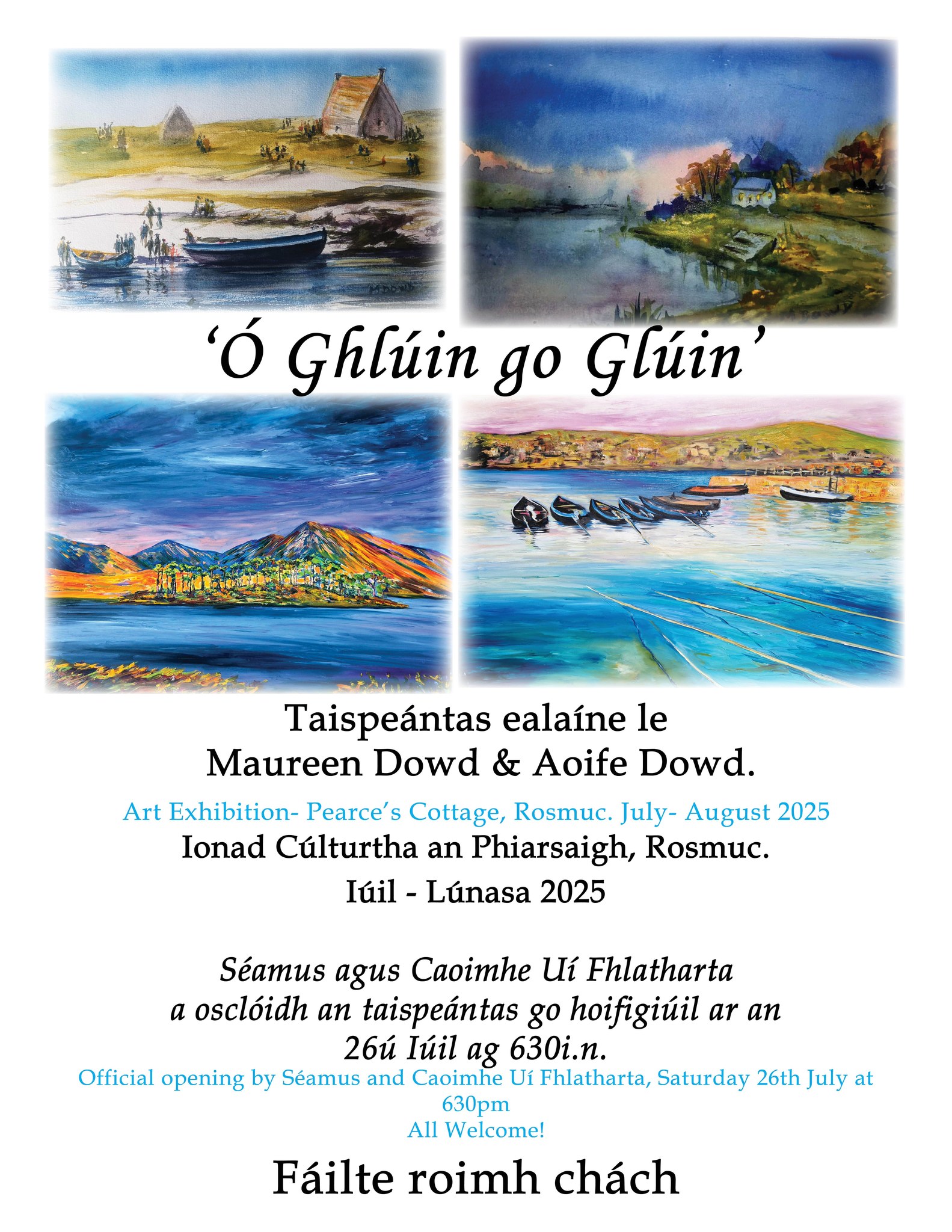 Beidh an taispeántas ealaíne “Ó Ghlúin go Glúin”, le Maureen Dowd & Aoife Dowd dhá n-oscailt ag Seamus & Caoimhe Uí Fhlatharta ar an 26ú Iúil 2025 ag 6.30in anseo in Ionad Cultúrtha an Phiarsaigh.
